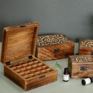 Afin de ranger vos huiles essentielles, ou de les vendre sous forme de magnifiques coffrets, AW Artisan France vous propose ces superbes boîtes d'aromathérapie en bois de manguier.