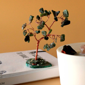 3x Agemt-10 - Grand Arbre de Pierres Précieuses - Aventurine verte sur Base d'Agate Naturelle Verte (100 pierres)