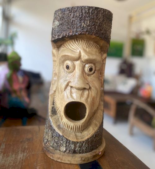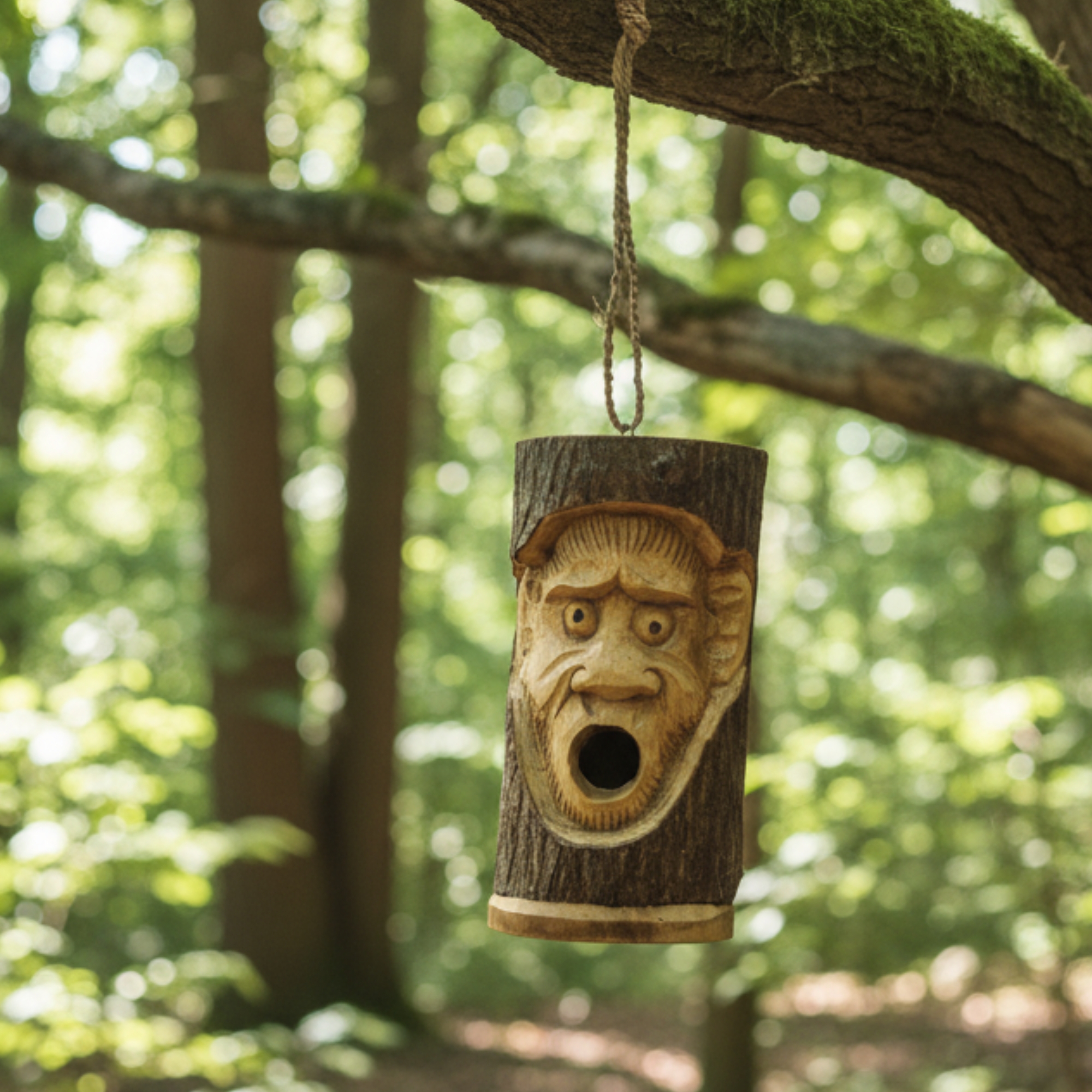 Apportez une touche sauvage et artisanale à votre rayon nature & jardin avec ce nichoir “Singe en colère”, entièrement sculpté à la main dans du bois de Jempinis. Chaque pièce est façonnée directement dans un tronc, révélant un visage expressif et dynamique qui attire immédiatement l’attention. Son style original plaît autant aux amateurs d’artisanat authentique qu’aux passionnés de décoration extérieure insolite.