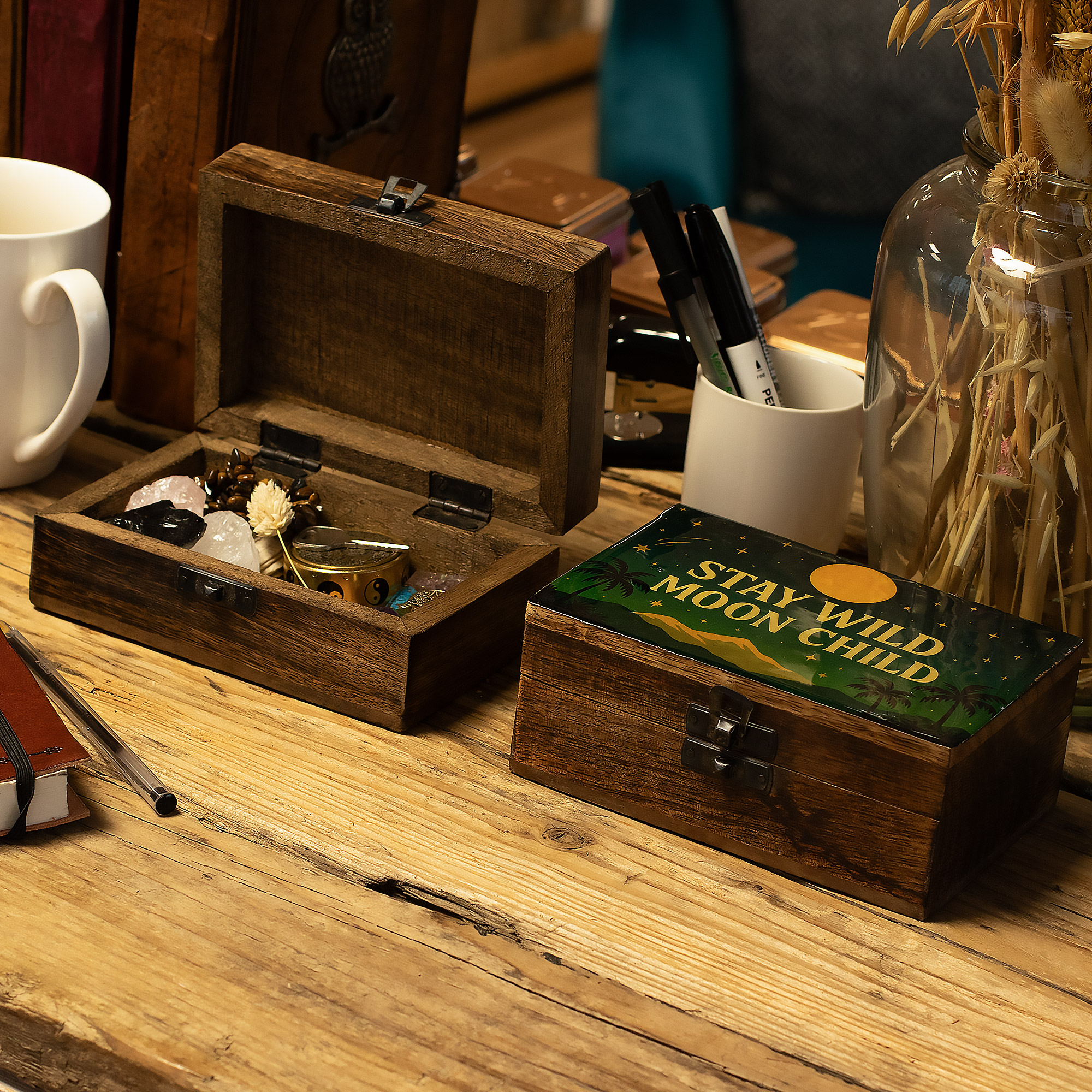 Distribuée par AW Artisan France, grossiste en artisanat tendance. Ajoutez cette boîte “Reste Sauvage, Enfant de la Lune” à votre catalogue et proposez un produit inspirant à fort potentiel commercial.