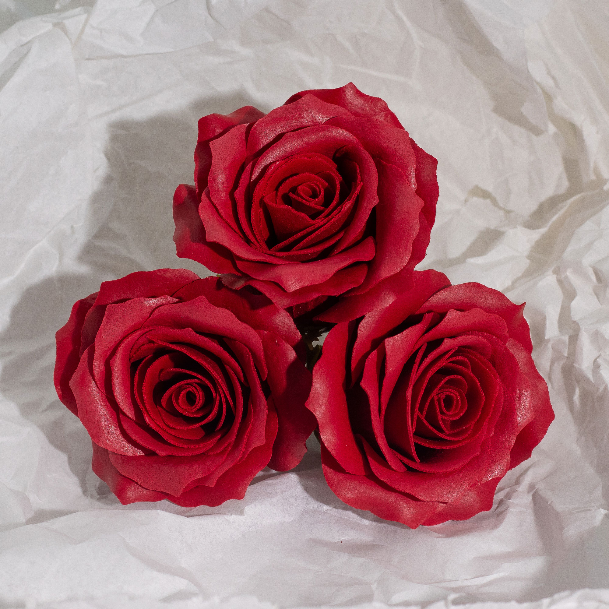 Ces roses de savon couleur rouge vin incarnent le raffinement et la profondeur. Leur couleur intense et leur texture douce ajoutent une touche de luxe à toute présentation.