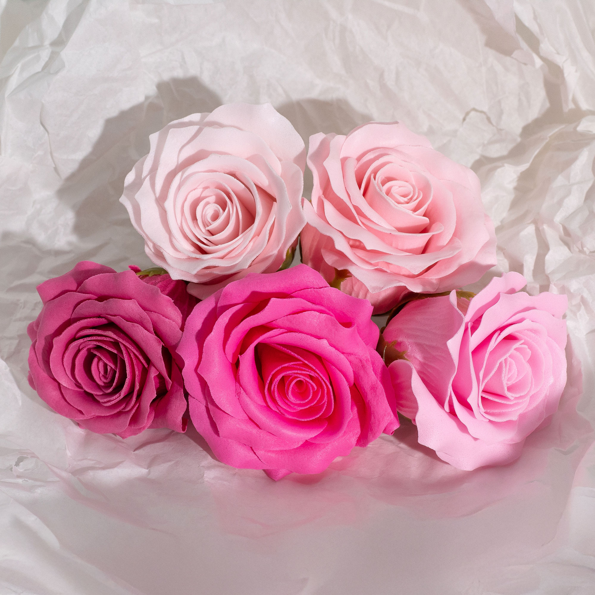 Ces délicates fleurs de savon dégradé rose allient tendresse et élégance. Leurs nuances douces, allant du rose pastel au fuchsia clair, créent un dégradé harmonieux qui apporte une touche romantique et féminine à toute composition. Chaque lot de 25 pièces comprend des fleurs aux teintes légèrement variées, parfaites pour réaliser des bouquets en relief ou des décorations raffinées.