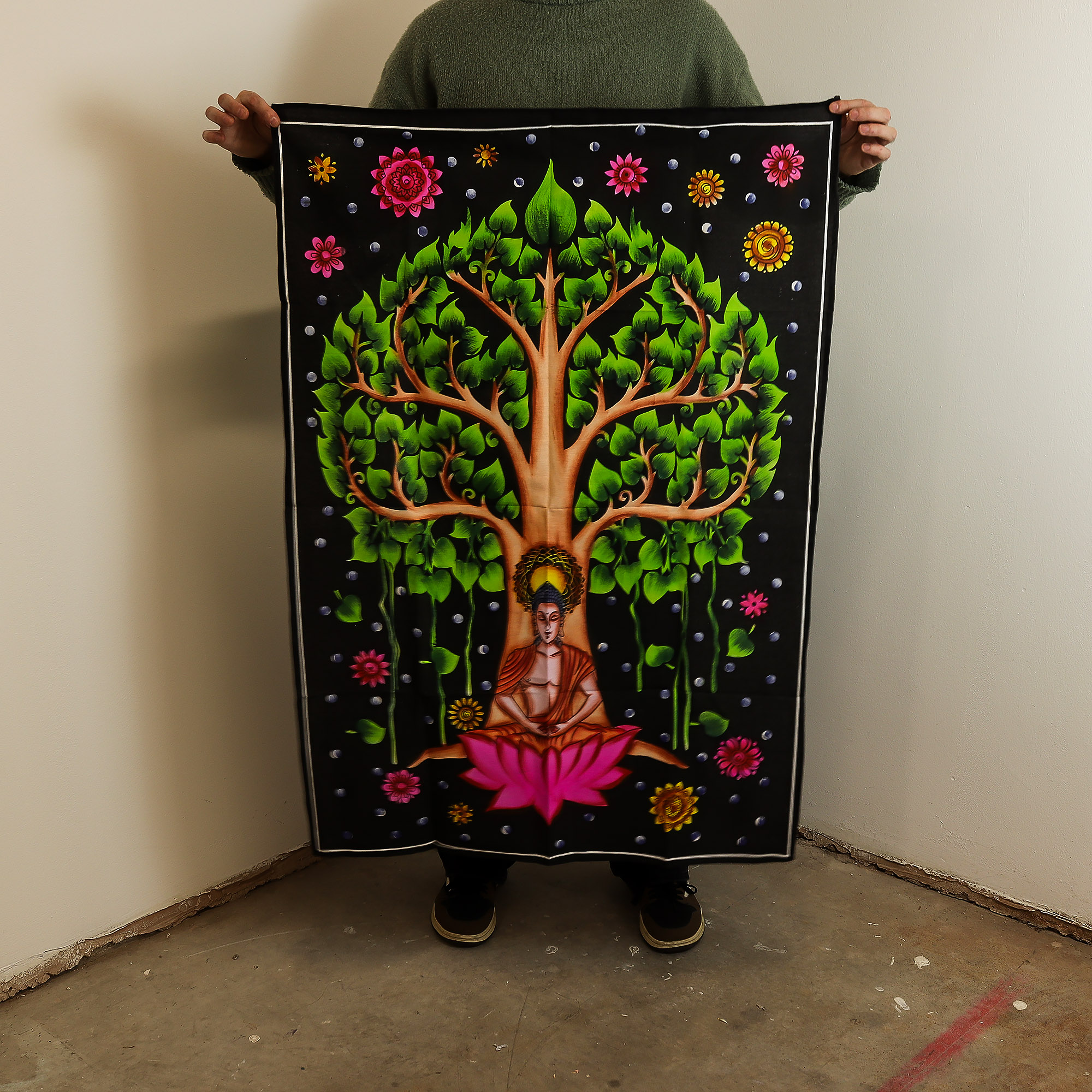 Cette tenture en coton 70x110 cm, représentant Bouddha méditant sous l’Arbre de Bodhi, est une pièce spirituelle emblématique. Fabriquée artisanalement en Inde, elle offre un visuel vibrant mêlant symbolisme, couleurs lumineuses et profondeur méditative. Idéale pour les boutiques ésotériques, magasins de décoration spirituelle, centres de yoga et revendeurs de bien-être.