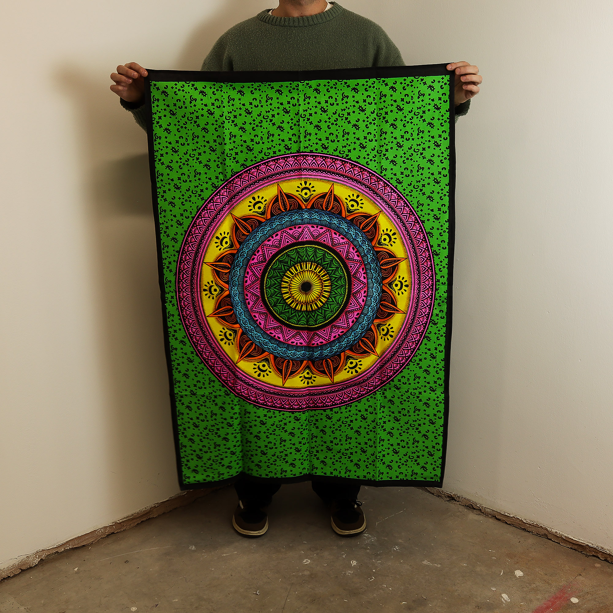 Pour une tenture ronde, vous pouvez aussi l’utiliser comme nappe, couvre-lit, tapis de méditation ou décoration de plage.