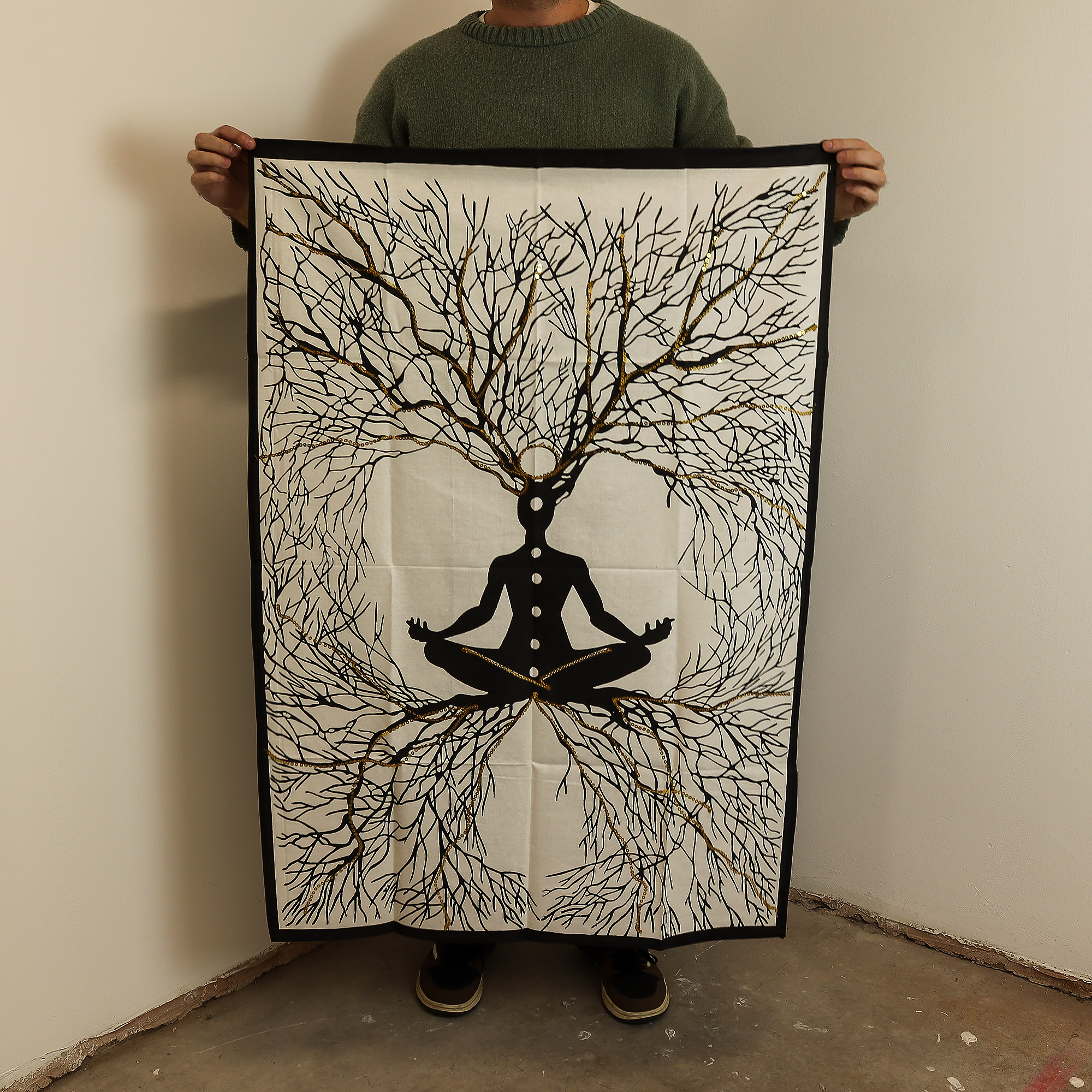 Pour une tenture ronde, vous pouvez aussi l’utiliser comme nappe, couvre-lit, tapis de méditation ou décoration de plage.