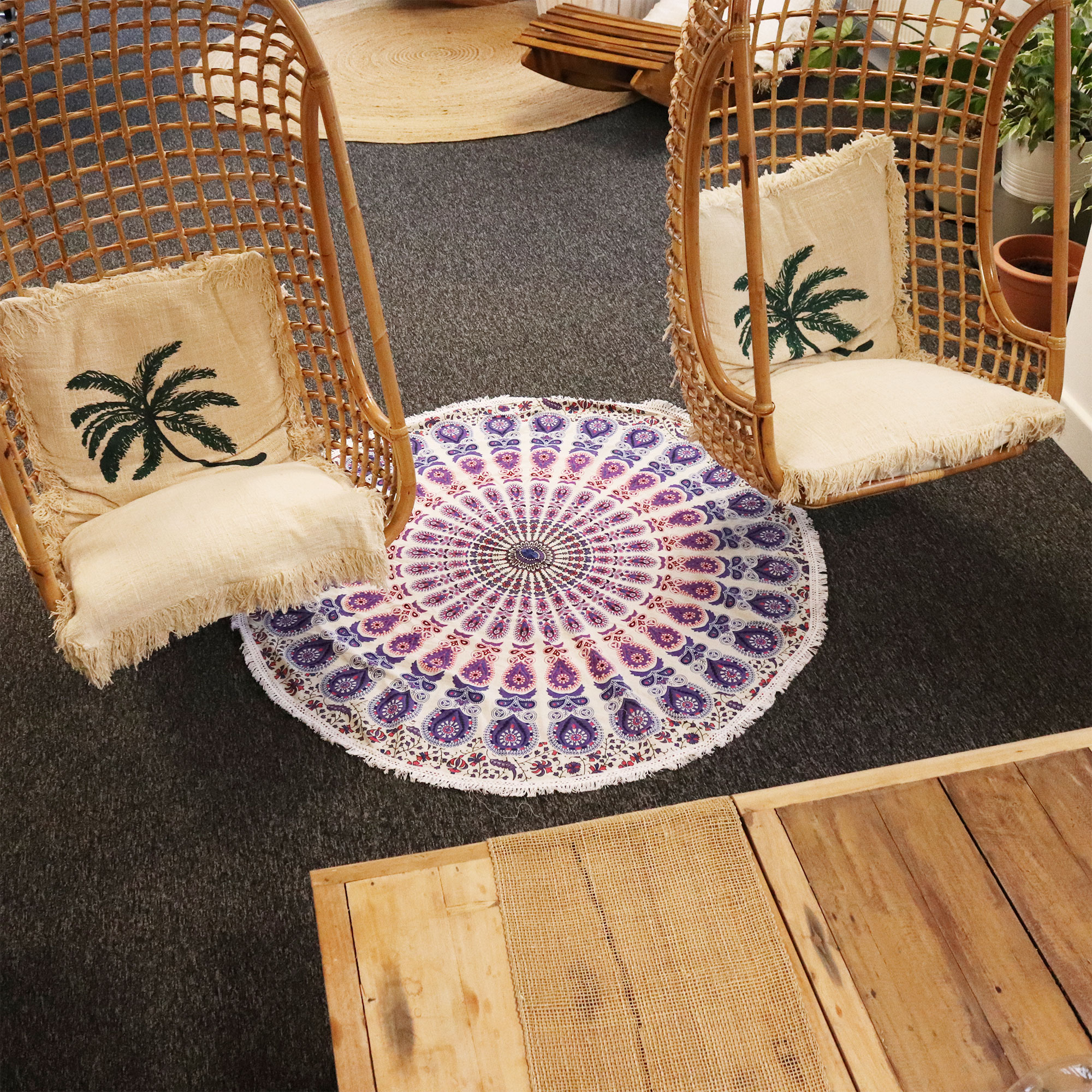 Pour une tenture ronde, vous pouvez aussi l’utiliser comme nappe, couvre-lit, tapis de méditation ou décoration de plage.