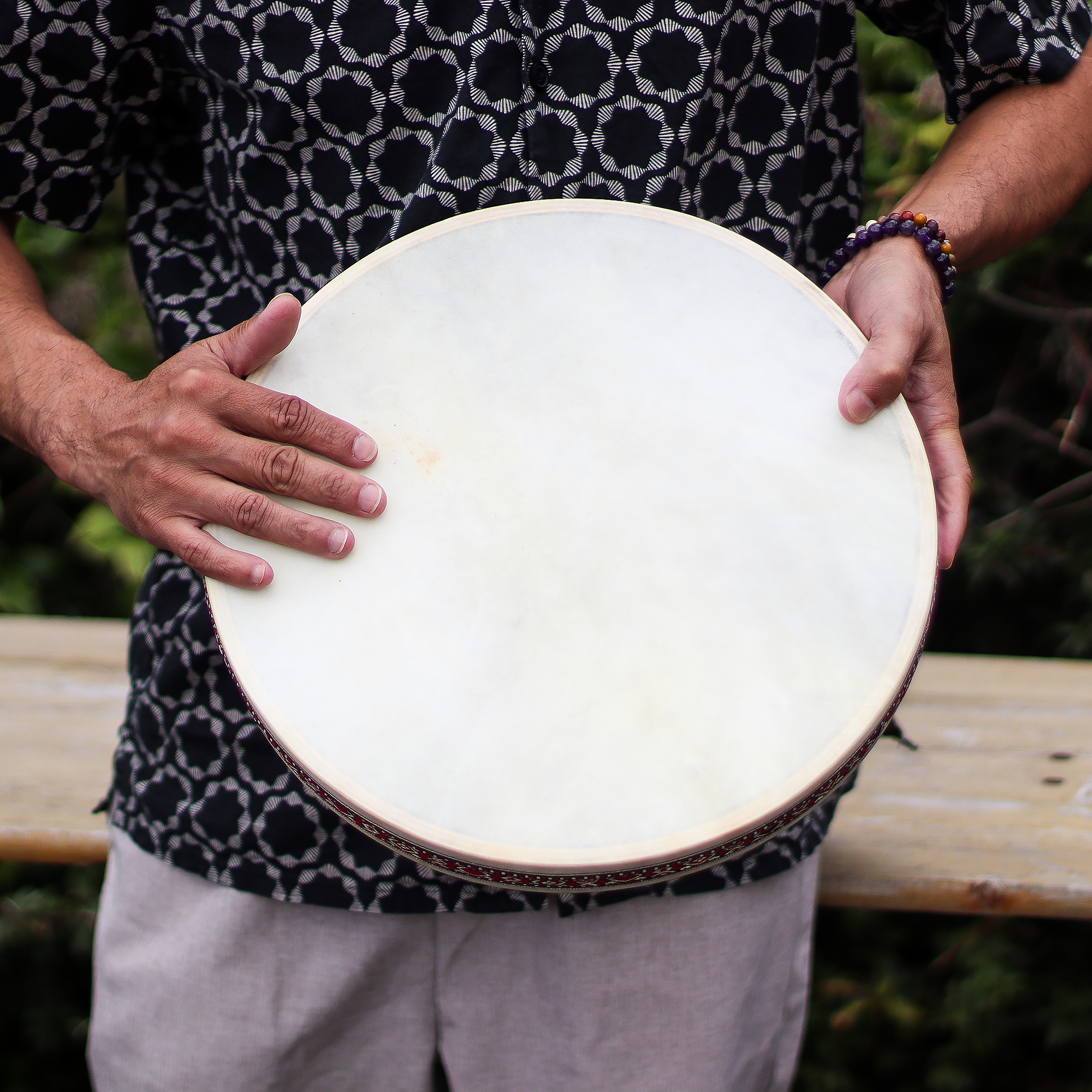 Le tambour chamanique Océan 35 cm offre une expérience sonore apaisante et polyvalente, reconnectant les auditeurs au rythme tranquille de la nature. Fabriqué à la main en Indonésie avec du cuir de chèvre véritable tendu sur un cadre décoratif joliment orné, ce tambour imite le mouvement calmant des vagues lorsqu’il est incliné ou secoué. Il peut également être joué à la main pour des rythmes doux, en faisant un instrument idéal pour les thérapeutes sonores, musiciens et pratiquants de méditation.