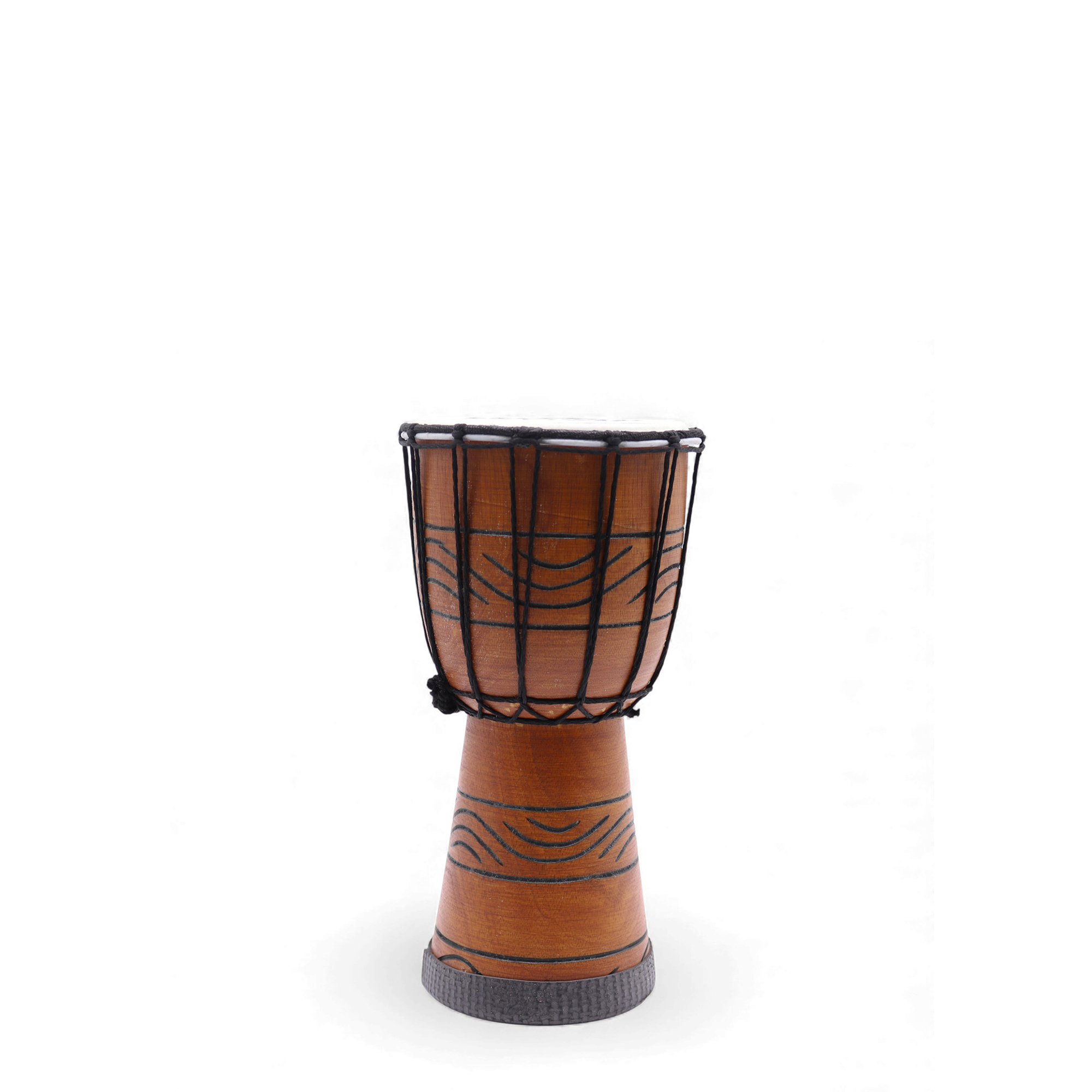 Grâce à son système d’accordage par corde, la tension reste stable et le rendu sonore constant. Son motif sculpté en forme de vagues apporte une touche contemporaine sans perdre l’essence de l’artisanat traditionnel. Léger et facile à transporter, ce djembé devient un indispensable pour animer un espace, créer une ambiance ou accompagner des sessions musicales improvisées.