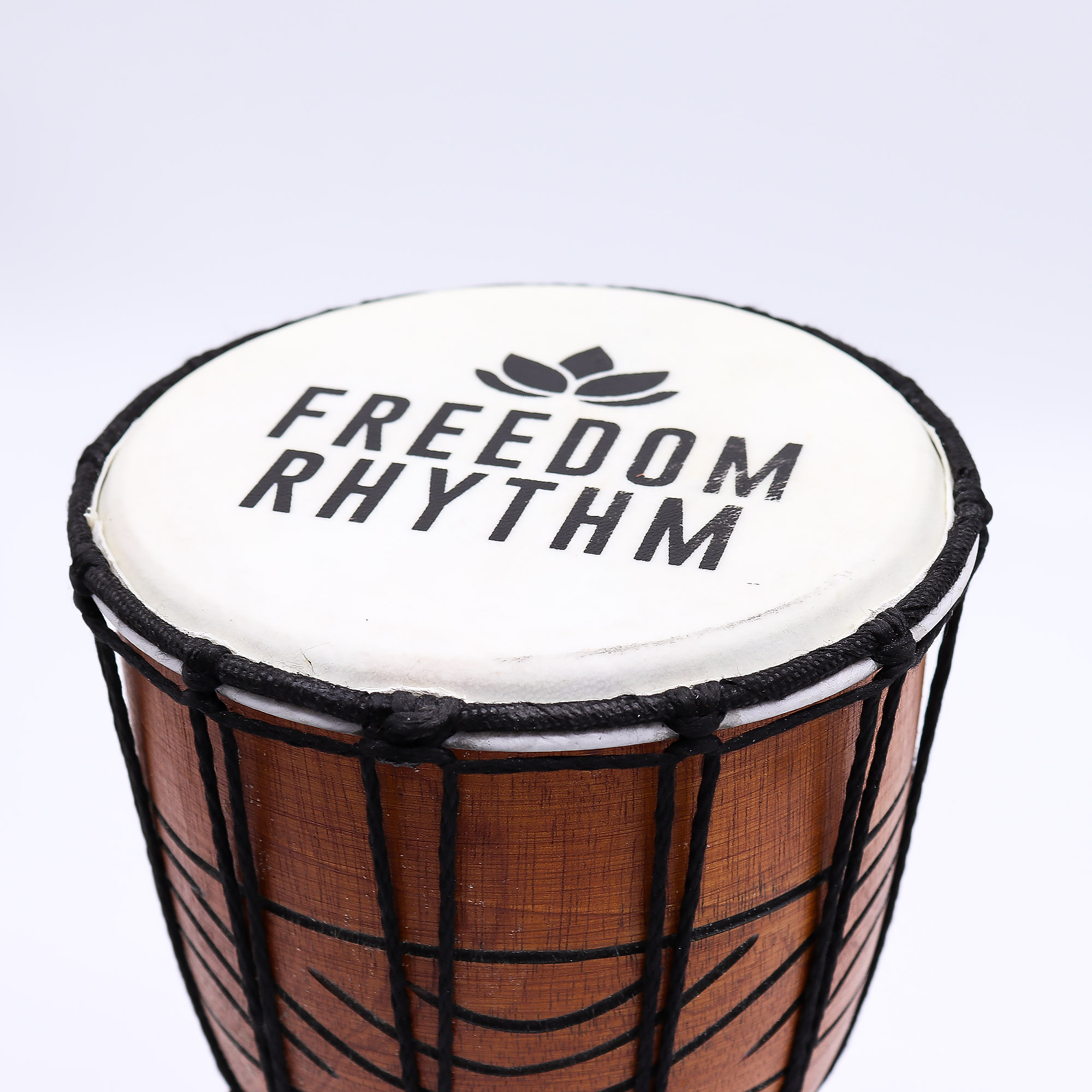 Le djembé Freedom Rhythm 30 cm offre une sonorité claire et dynamique dans un format compact, parfait pour initier petits et grands au monde des percussions. Entièrement sculpté à la main en Indonésie, il est équipé d’une peau naturelle de chèvre qui permet d’obtenir à la fois des claqués précis et des basses chaleureuses. Ce djembé est idéal pour les débutants, les ateliers musicaux, les animations pédagogiques ou toute activité visant à favoriser la détente par le rythme.
