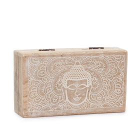 Fabriqués à partir de bois de manguier naturel durable, chaque modèle est orné de motifs Bouddha et Hamsa finement gravés, avec des finitions blanchies à la chaux qui mettent en valeur les détails des gravures. Le Bouddha symbolise la sérénité, la pleine conscience et l’éveil spirituel, tandis que la main de Hamsa représente la protection, la chance et l’énergie positive.
