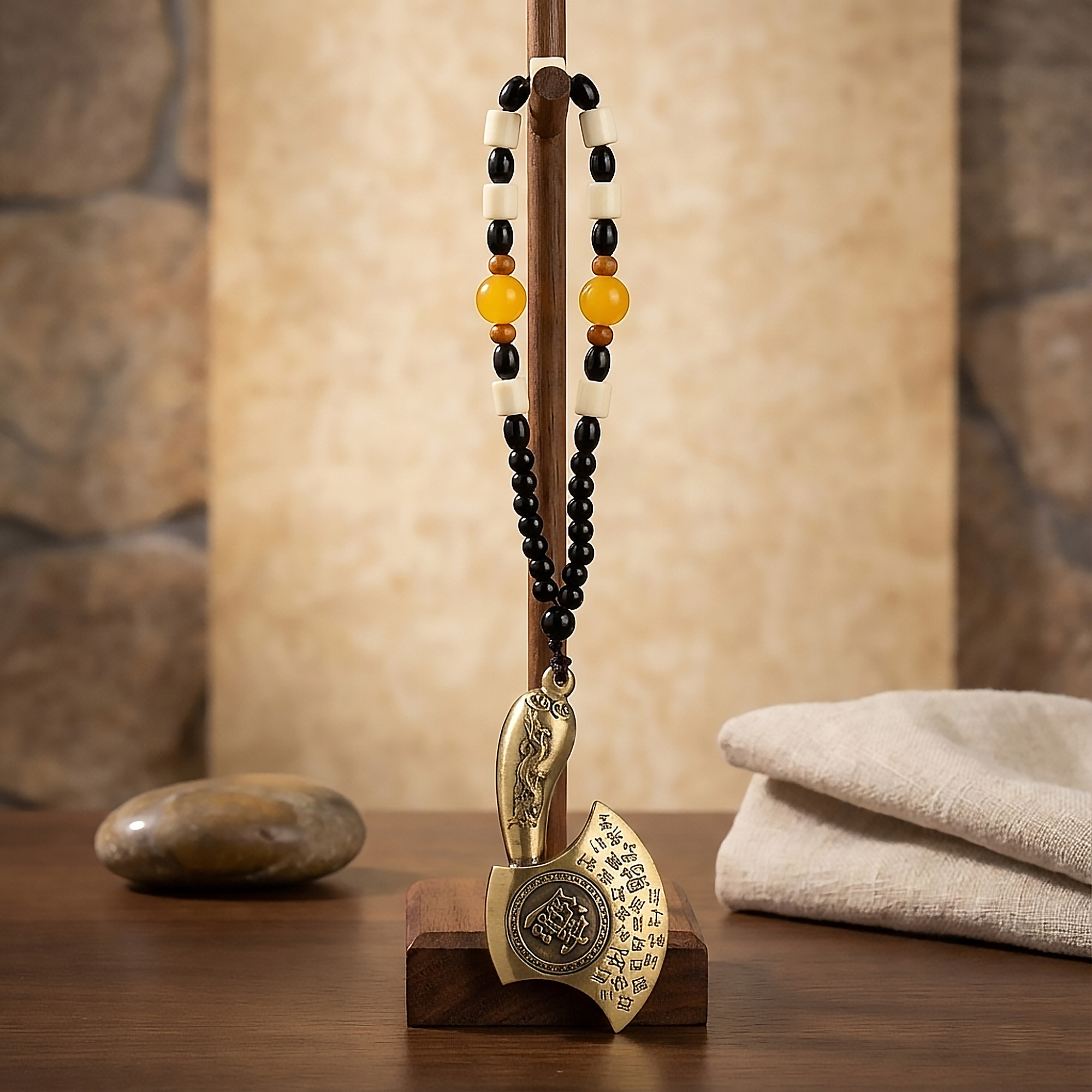 Dans la Chine impériale, les haches cérémonielles n’étaient pas utilisées pour le combat mais comme emblèmes d’autorité administrative. Elles symbolisaient le pouvoir de décider, de protéger les richesses et de maintenir l’ordre — une signification qui perdure aujourd’hui dans le Feng Shui moderne.