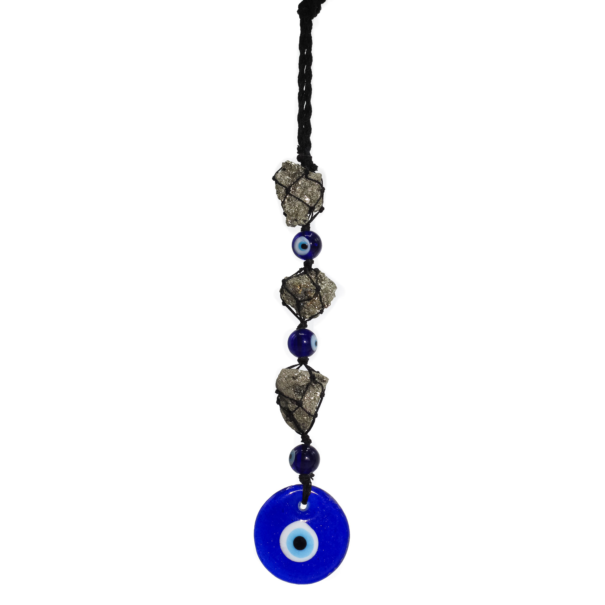 Le saviez-vous ? La pyrite, surnommée pierre de feu, est réputée pour attirer la prospérité et renforcer la confiance en soi. Associée à l’Œil Protecteur bleu, elle forme un puissant talisman contre les énergies négatives.