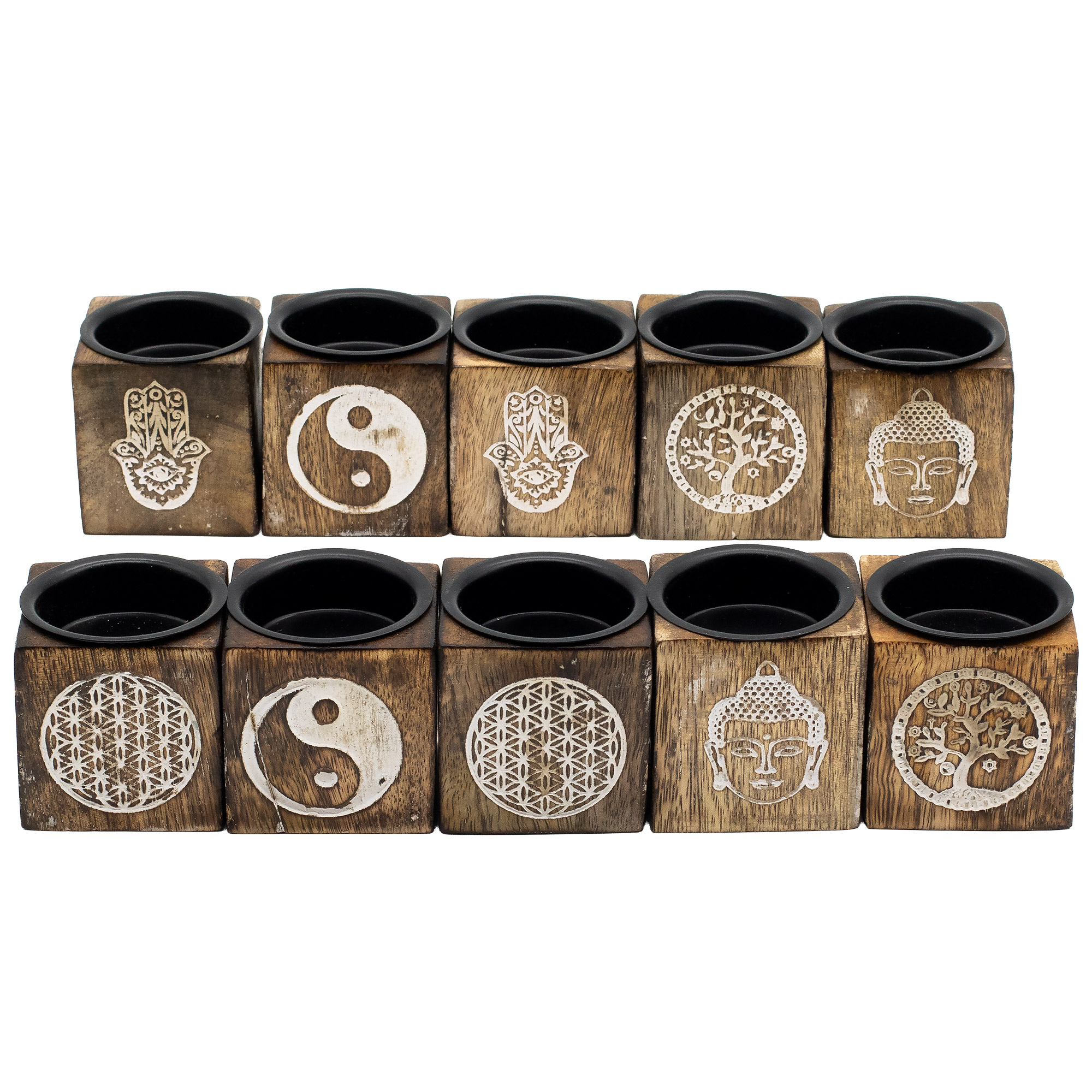 Découvrez ce set de 10 cubes en bois de manguier faits main, gravés avec des motifs spirituels inspirants comme Bouddha, Main de Fatima, Ying Yang ou encore l’Arbre de Vie. Chaque cube est conçu pour allier esthétique et fonctionnalité, apportant une touche de sérénité et d’harmonie à votre intérieur.