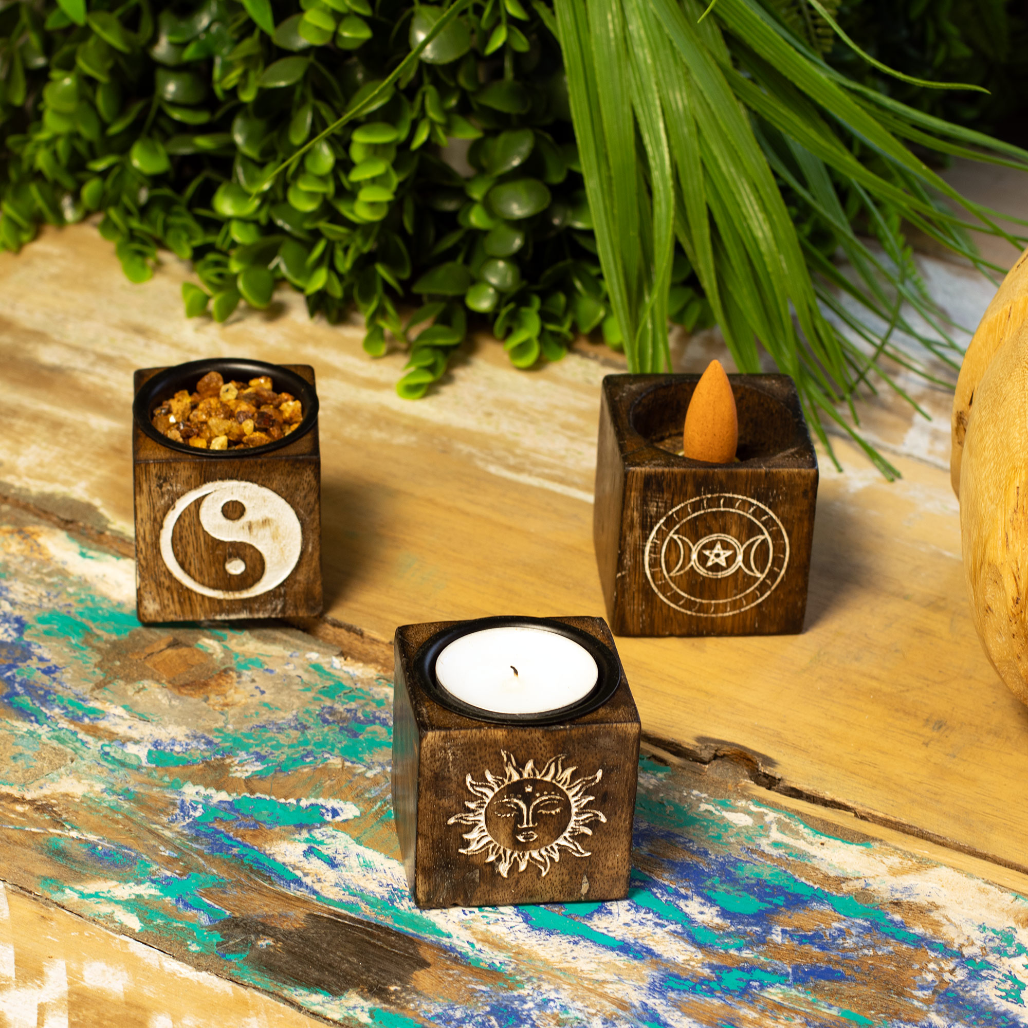 Chaque cube dispose d’un dessus creusé, offrant une polyvalence exceptionnelle. Il peut accueillir une bougie chauffe-plat, un cône d’encens, des cristaux ou bijoux, ou servir d’outil décoratif et rituel sur un autel. Compact mais solide, il se montre parfait individuellement ou en ensemble thématique, pour créer une atmosphère gothique, mystique ou spirituelle dans votre espace.