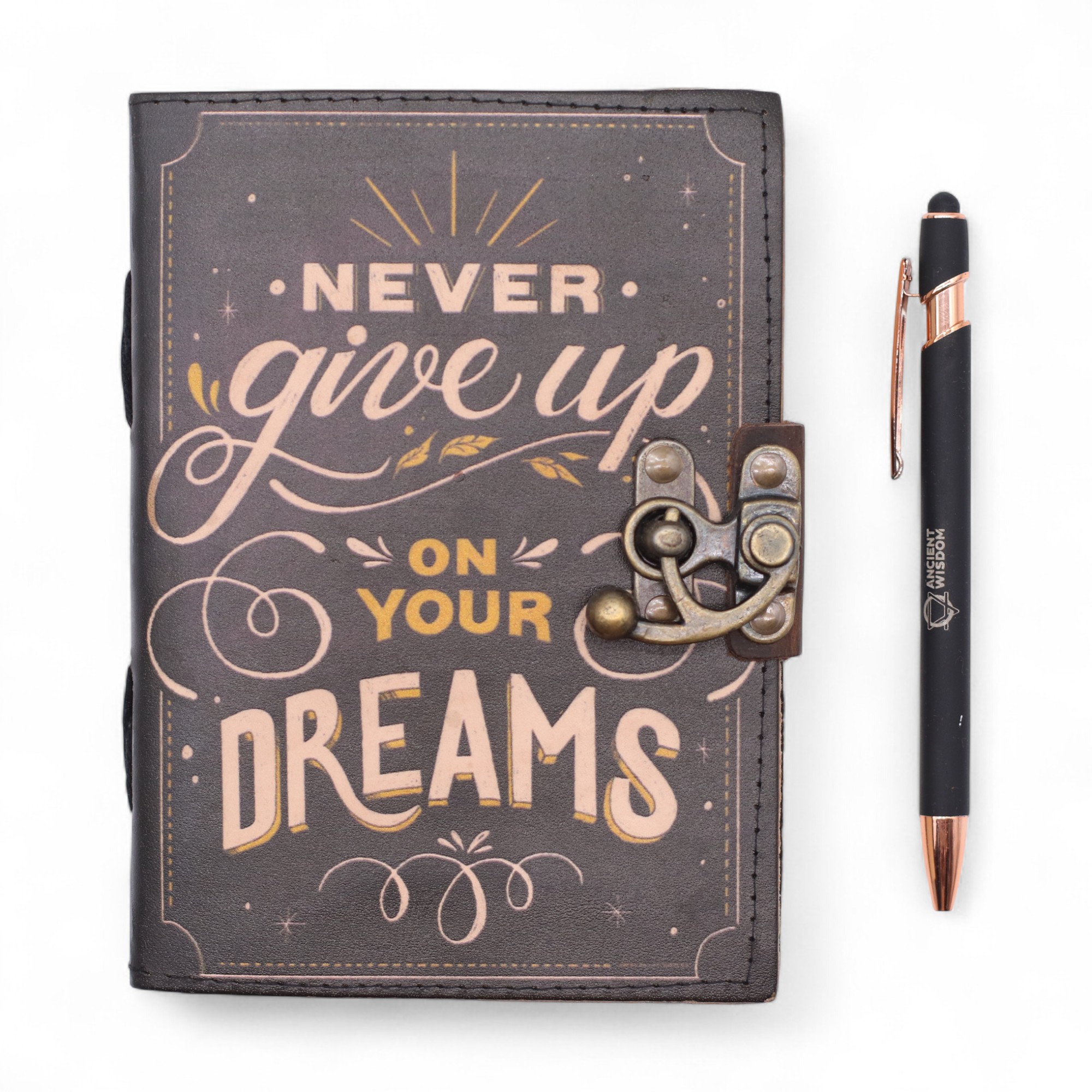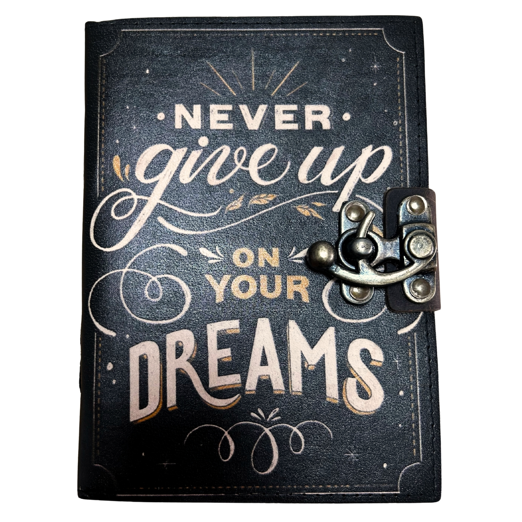 Ce carnet en cuir véritable de format généreux (18x13 cm) est une véritable source de motivation. Imprimé avec la phrase « Ne renonce jamais à tes rêves », il inspire confiance, persévérance et ambition. Composé de 200 pages blanche sans lignes, il est parfait pour l’écriture quotidienne, les projets à long terme, ou comme journal de croissance personnelle.