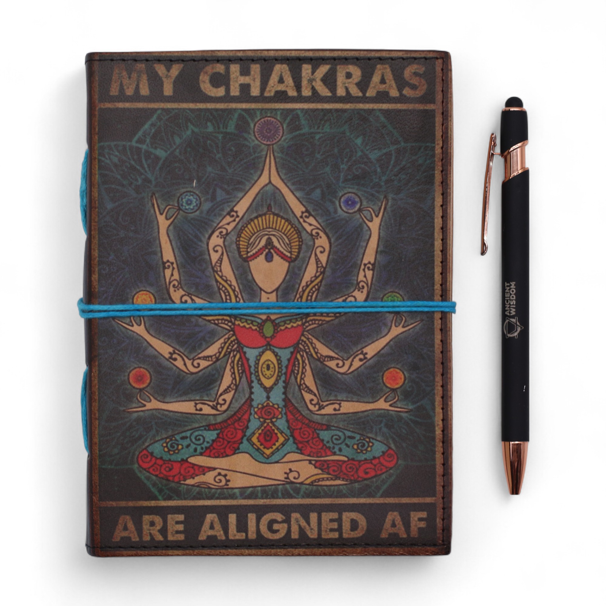 Ce carnet en cuir original affiche une déclaration assumée et directe : « Chakras alignés AF ( "As f*ck" , qu'on pourrait traduire par Chakras alignés comme jamais !». Parfait mélange entre humour, spiritualité et design moderne, il séduira une clientèle jeune et engagée dans son bien-être intérieur. Avec ses 200 pages unies non lignés, il est idéal pour écrire, méditer, créer ou planifier.
