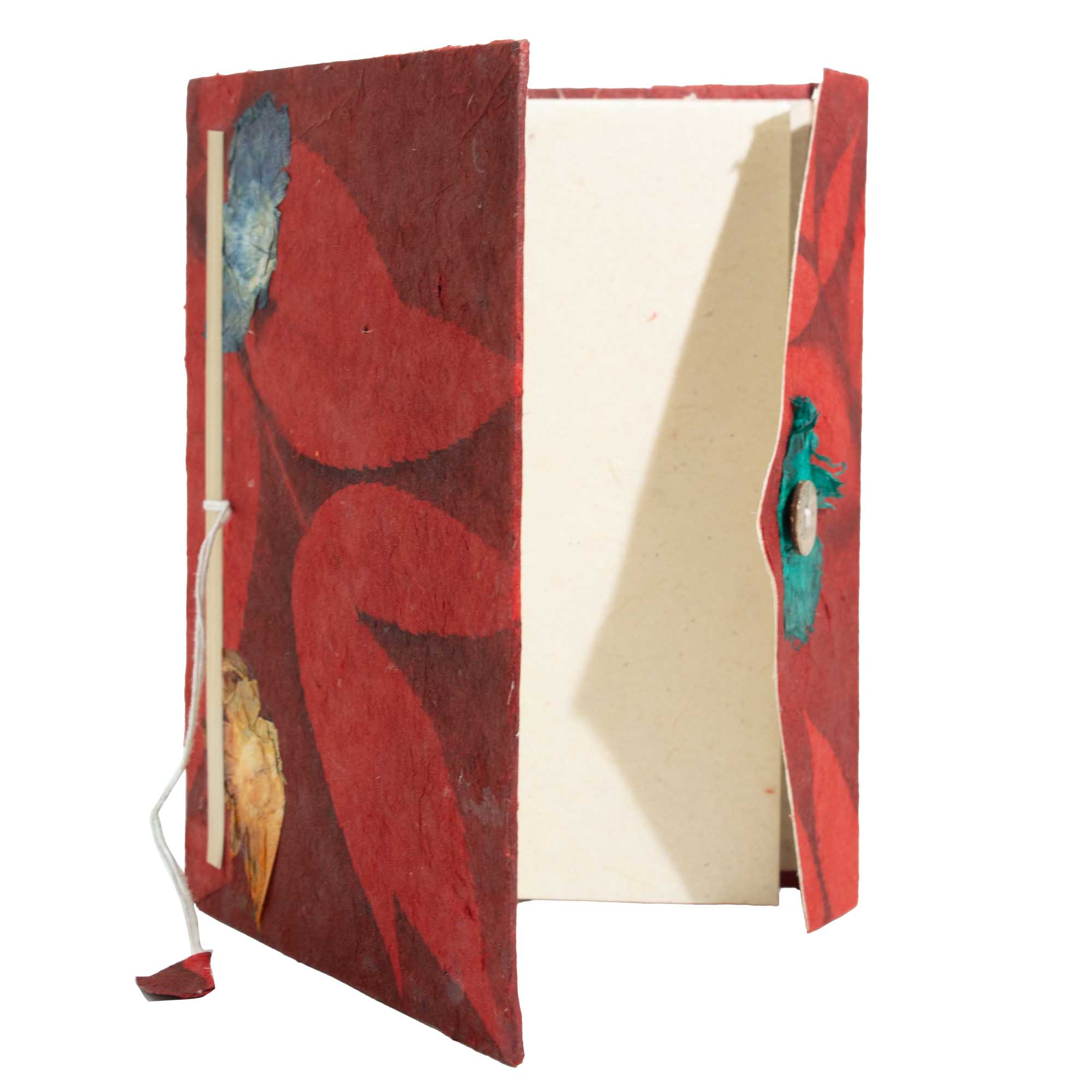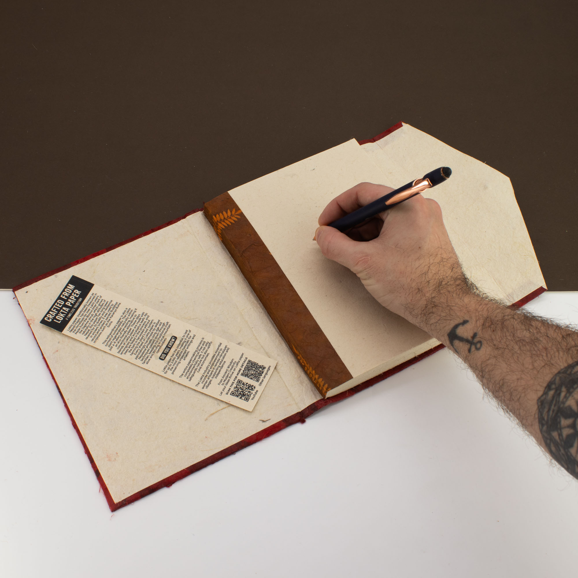 Le Grand Carnet Lokta Fleurs – Rubis est un carnet artisanal haut de gamme, fabriqué à la main au Népal selon des techniques traditionnelles. Sa couverture florale aux nuances rouge rubis lui confère une identité forte, élégante et chaleureuse, idéale pour capter l’attention en boutique.