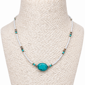 Chaque pièce étant fabriquée artisanalement, de légères variations dans les pierres et les perles rendent chaque bijou unique.