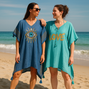 Que vous optiez pour un paréo léger pour vos journées à la plage, un caftan élégant pour vos soirées ou un pantalon long chic pour un look estival raffiné, chaque article est conçu pour apporter une touche de légèreté et de raffinement à la garde-robe de vos clients.