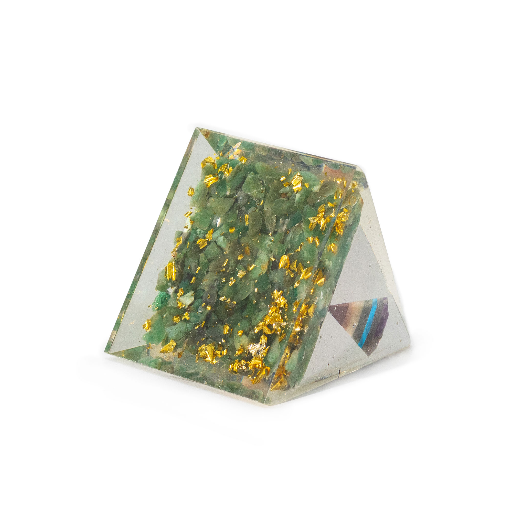 Cette superbe pyramide orgonite est une pièce énergétique unique, combinant un pendule à 7 couches de pierres naturelles et une base en aventurine verte, symbole de chance et d’harmonie. Véritable concentré d’énergie positive, elle purifie l’atmosphère, favorise la clarté mentale et équilibre les chakras.