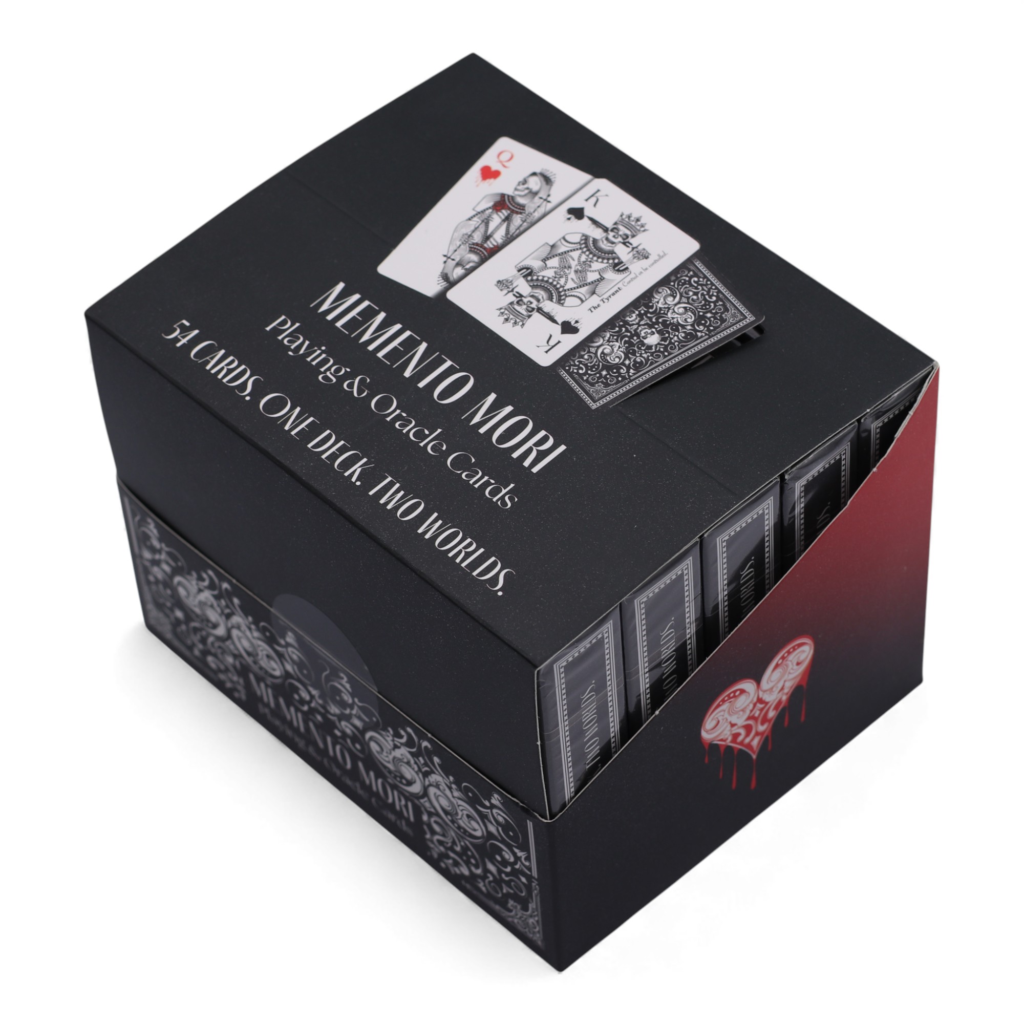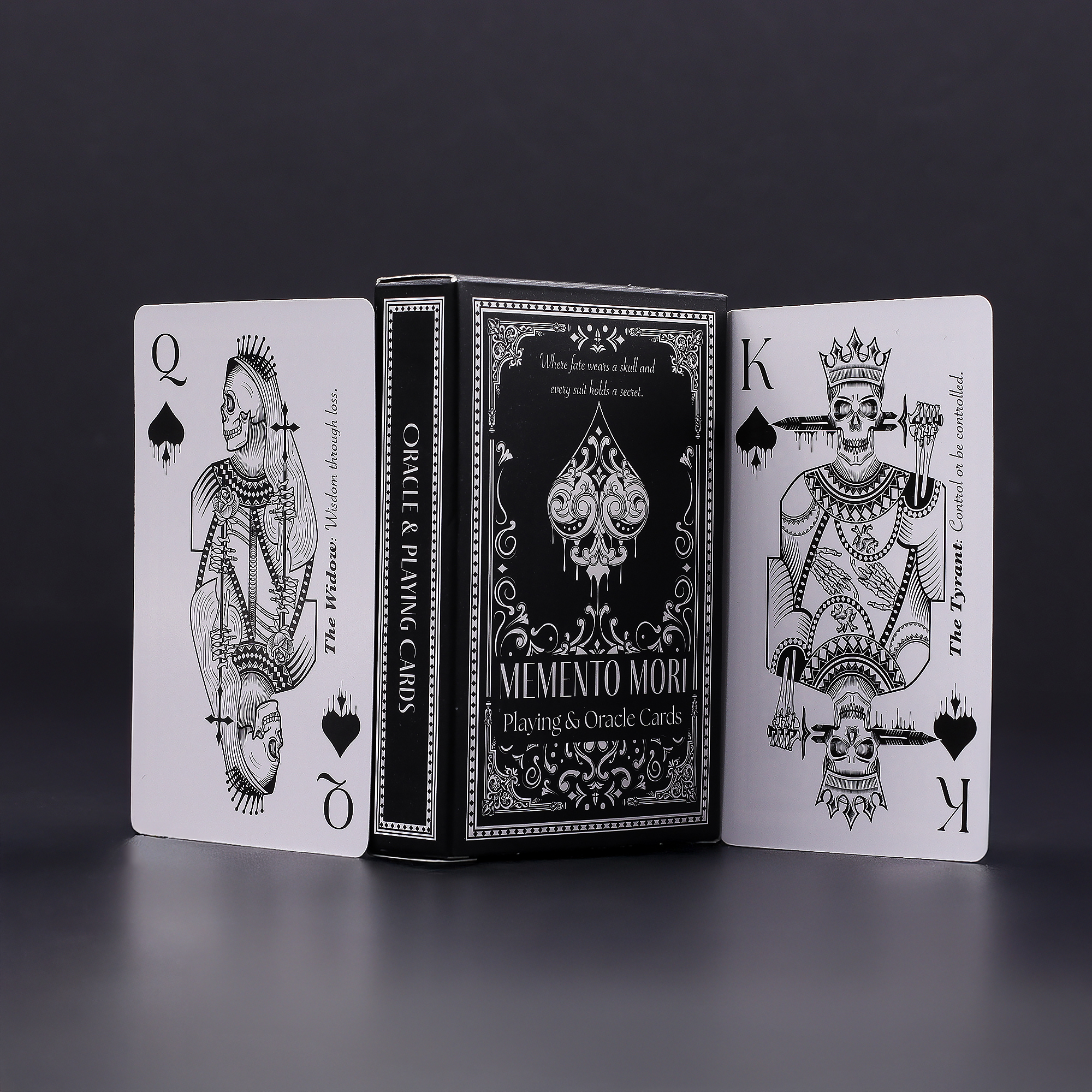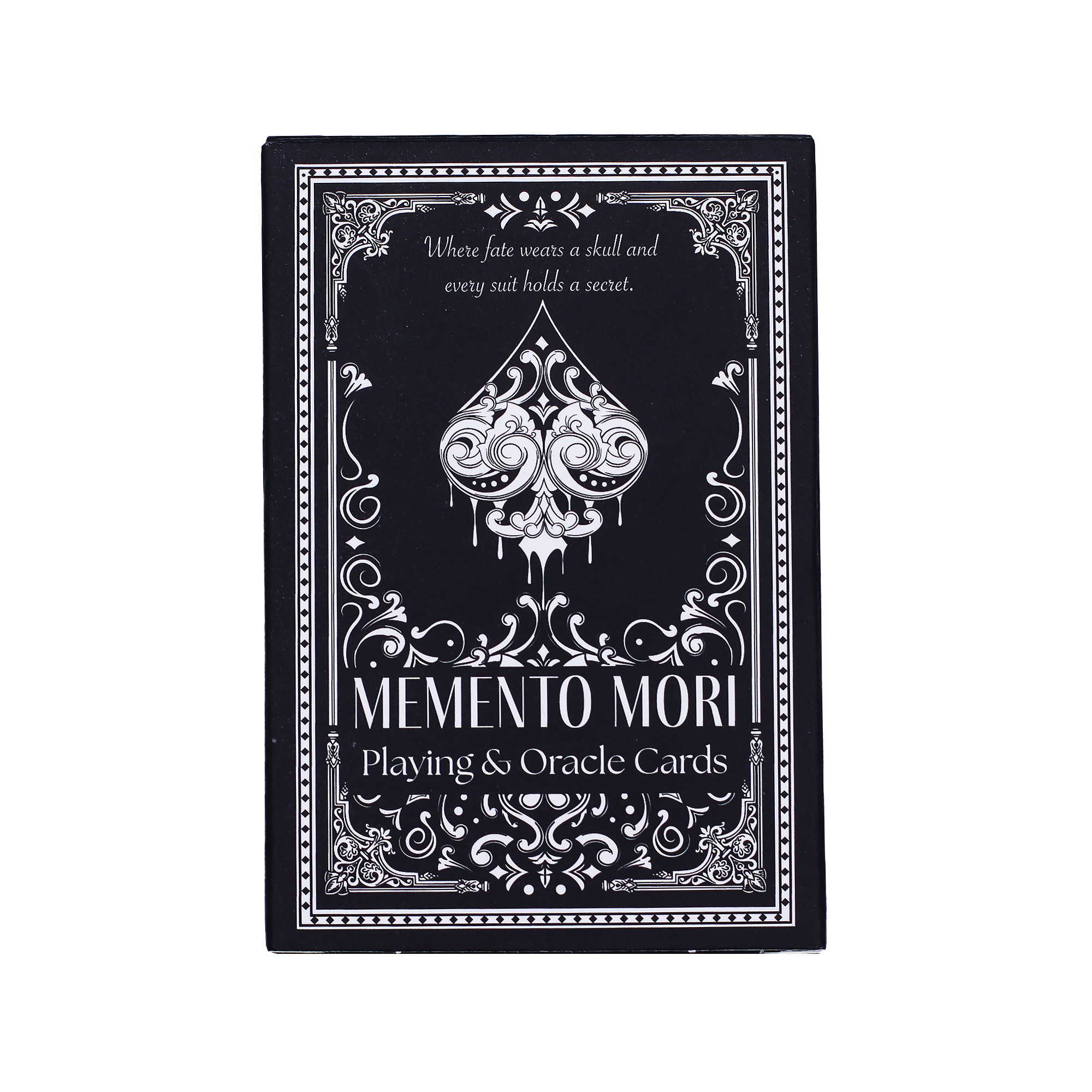 Le terme Memento Mori signifie « souviens-toi que tu vas mourir ». Dans l’art, il rappelle la fragilité de la vie et invite à apprécier chaque instant — un thème fort qui donne à ce deck une profondeur symbolique appréciée par les collectionneurs.