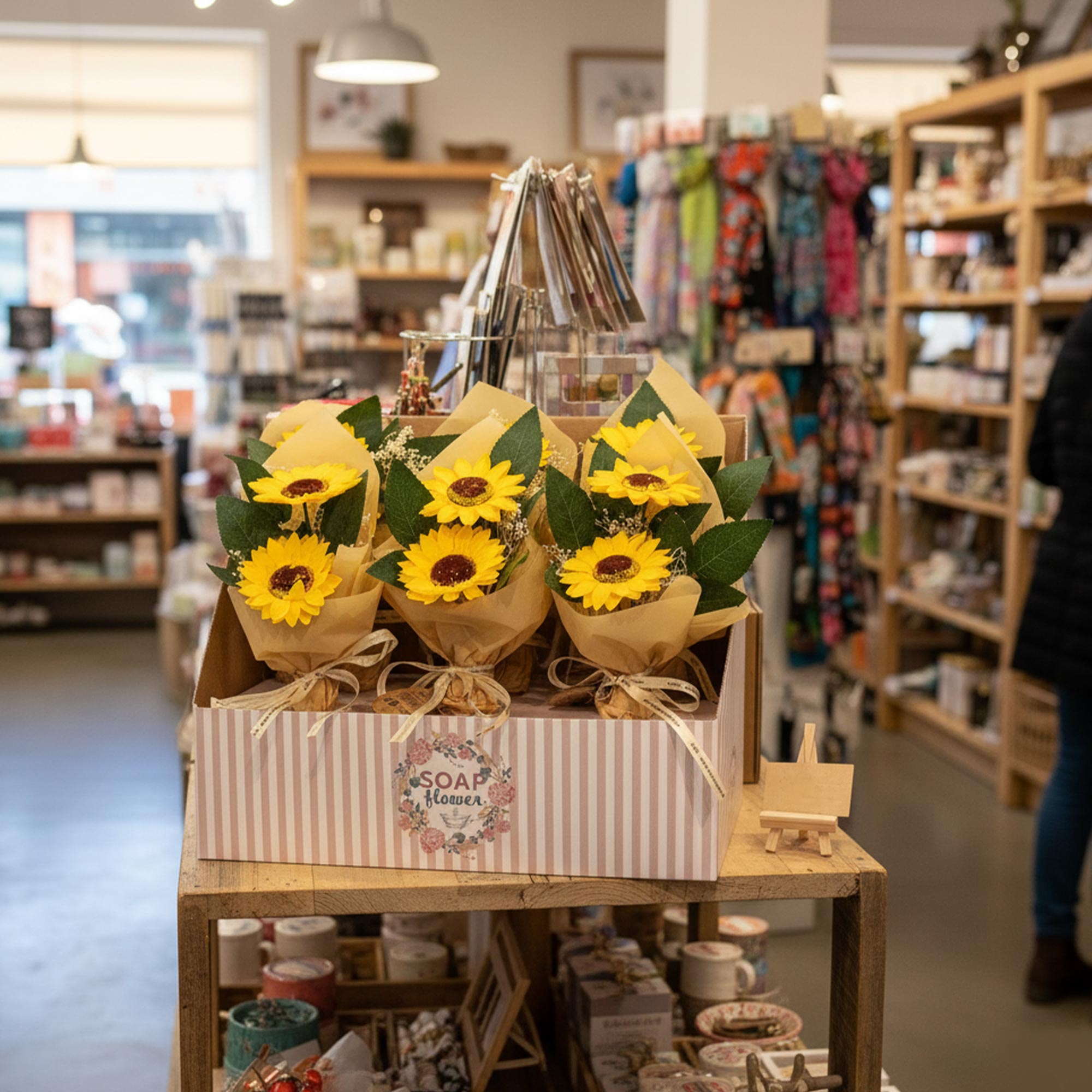 Commandez dès maintenant et illuminez votre boutique avec la beauté naturelle des tournesols en savon signés AW Artisan France.