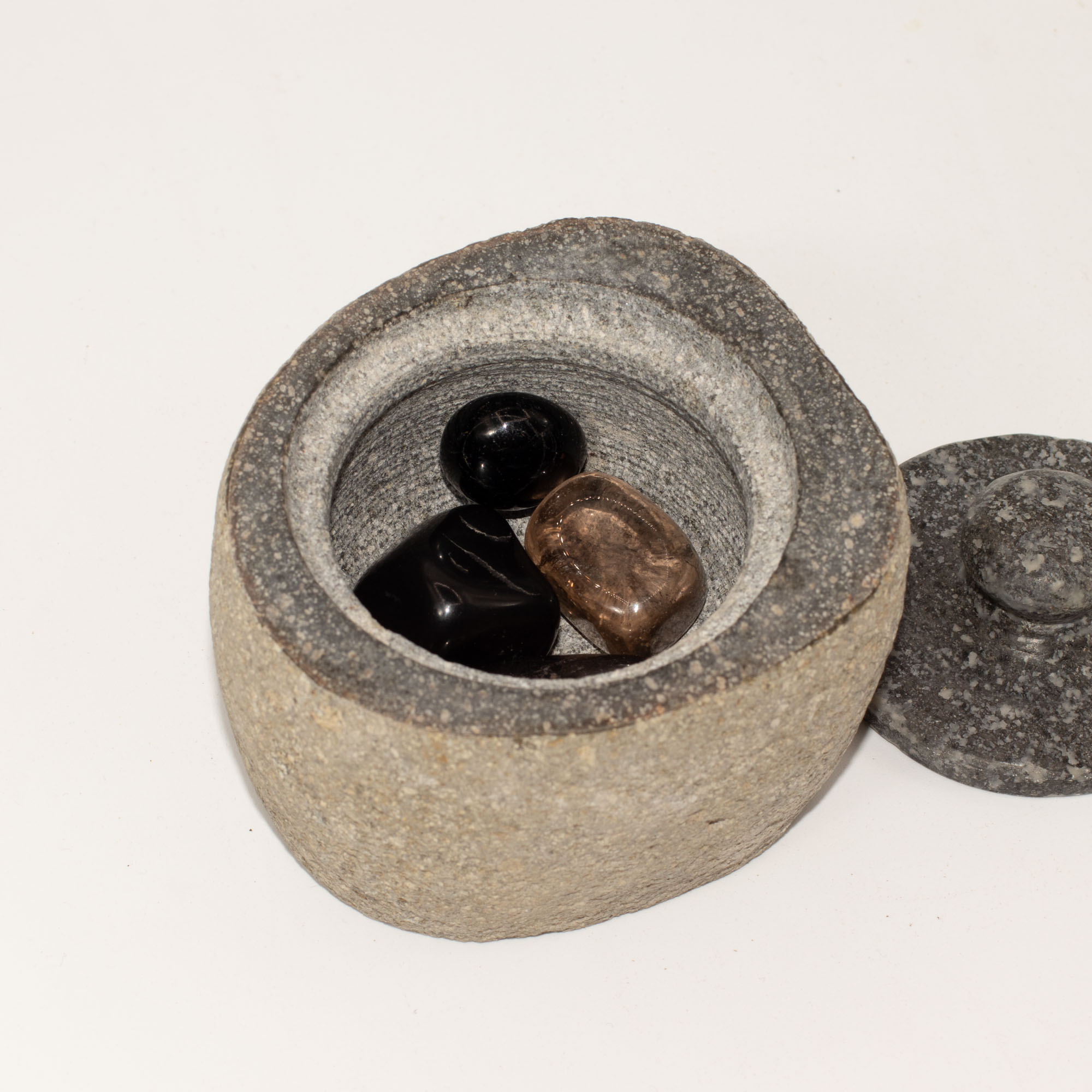 Découvrez ce pot d’ancrage en pierre naturelle de rivière, entièrement fait à la main en Indonésie par des artisans experts. Chaque pièce est unique, sculptée dans un galet façonné naturellement par l’eau douce des rivières, garantissant solidité, authenticité et caractère minéral.