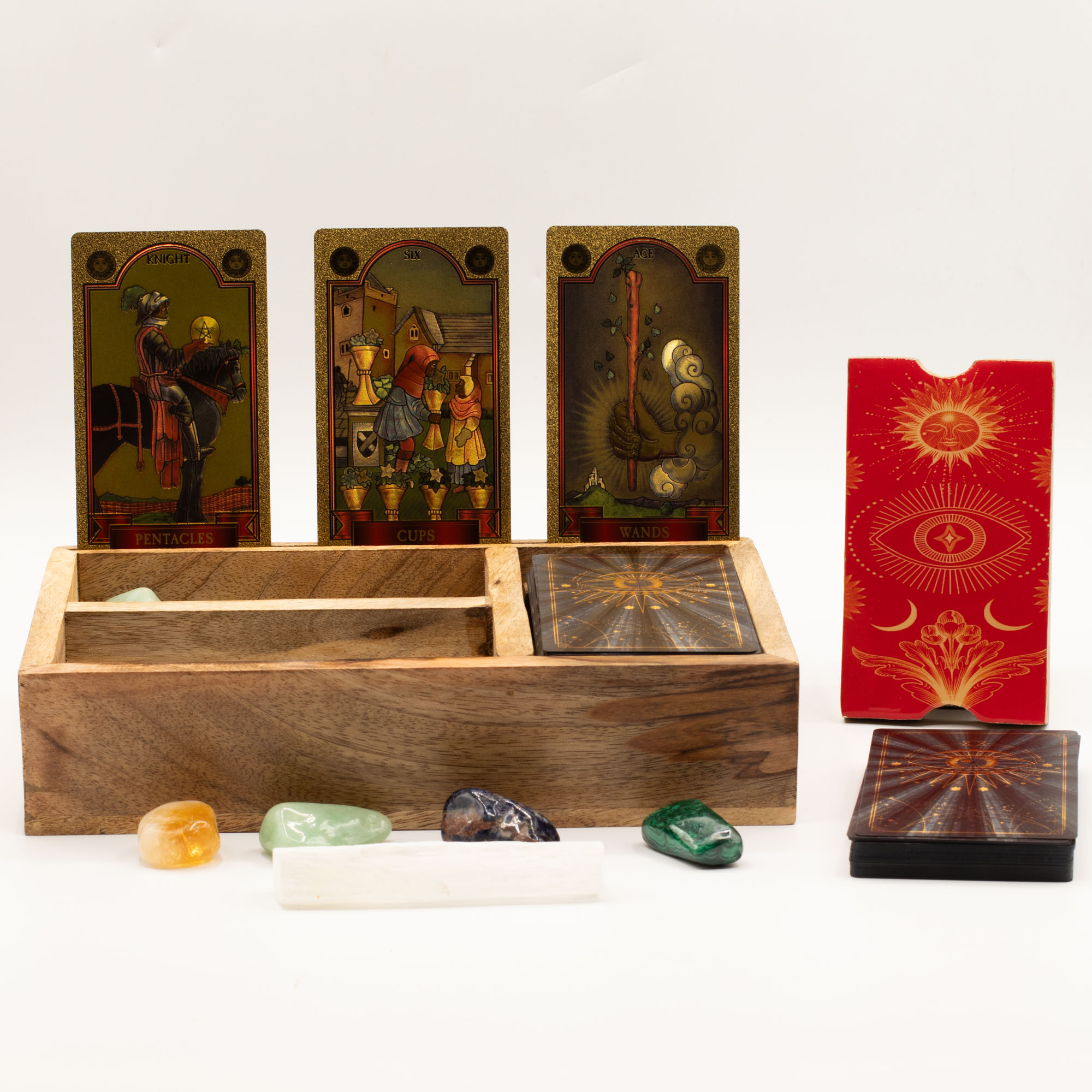 Placer les cartes de tarot dans les compartiments prévus à cet effet.