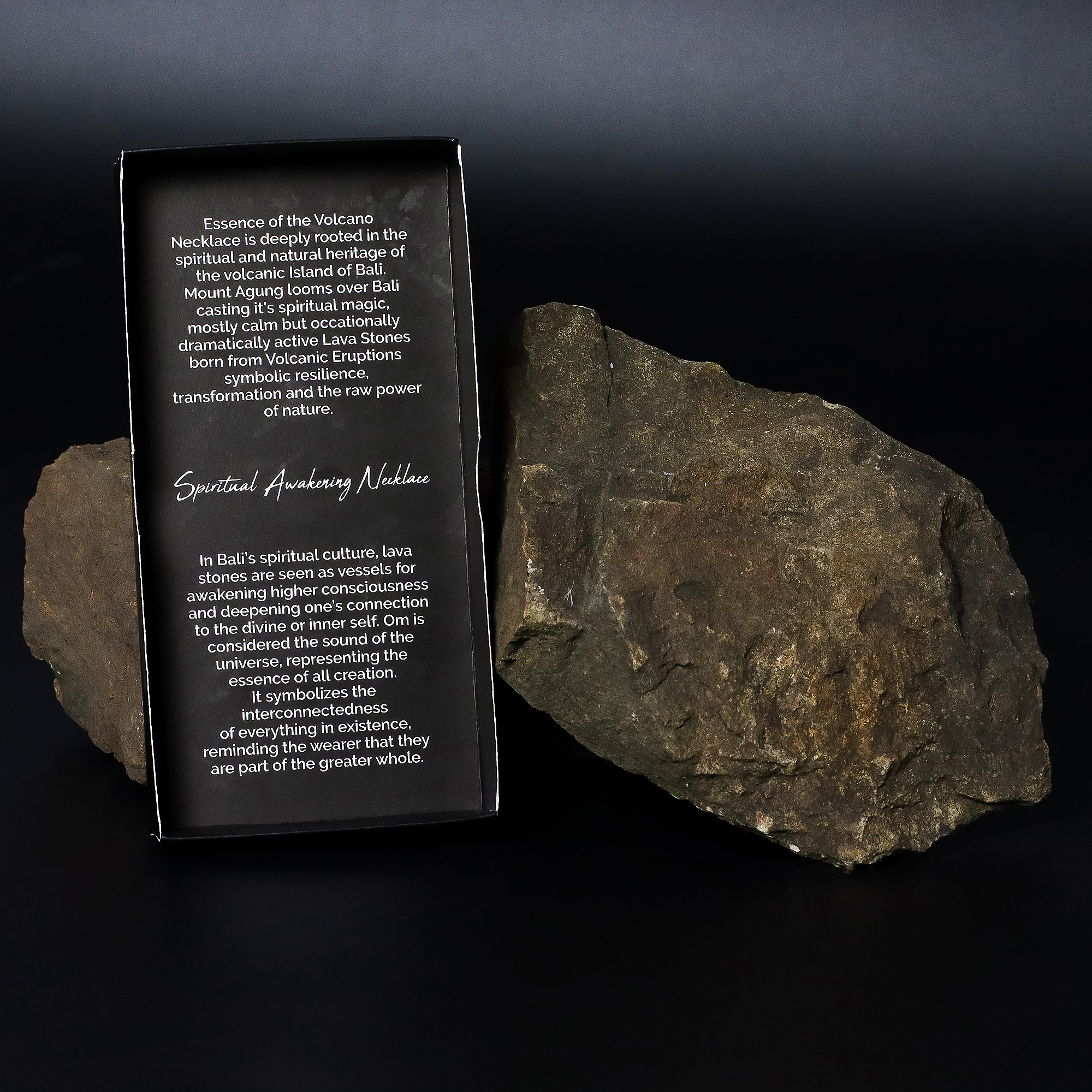 Le Collier Essence du Volcan – Éveil Spirituel combine la force d’ancrage de la pierre volcanique naturelle avec des perles colorées et un pendentif central Om, symbole universel de conscience élevée et d’expansion intérieure.