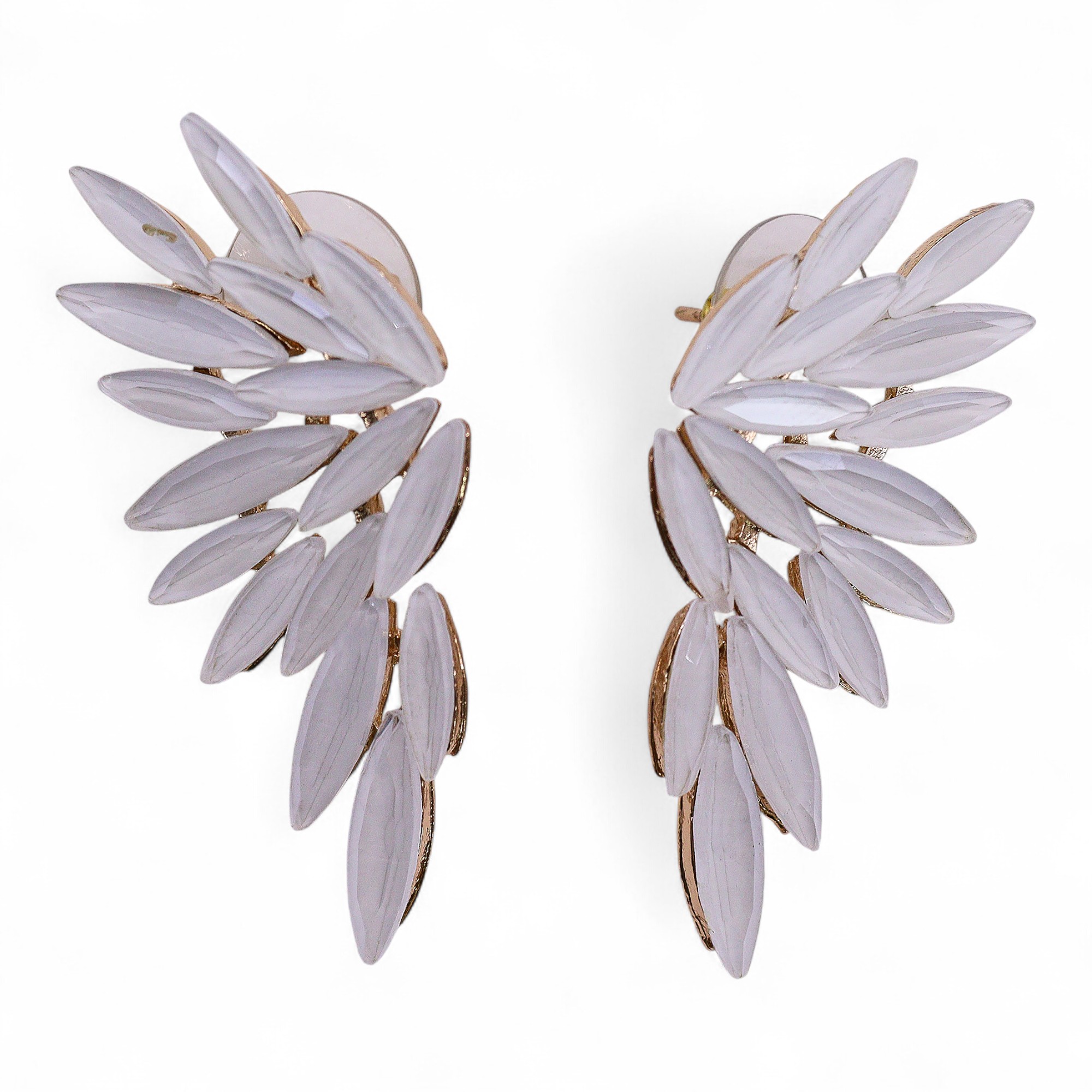 Ces boucles d’oreilles Ailes d’Ange en verre couleur claire incarnent la pureté et la lumière. Leur design raffiné, inspiré des ailes célestes, apporte une touche de grâce et de mystère à chaque tenue. Montées sur une base en alliage doré sans nickel, elles sont légères, durables et éclatantes, parfaites pour sublimer vos présentoirs en boutique.